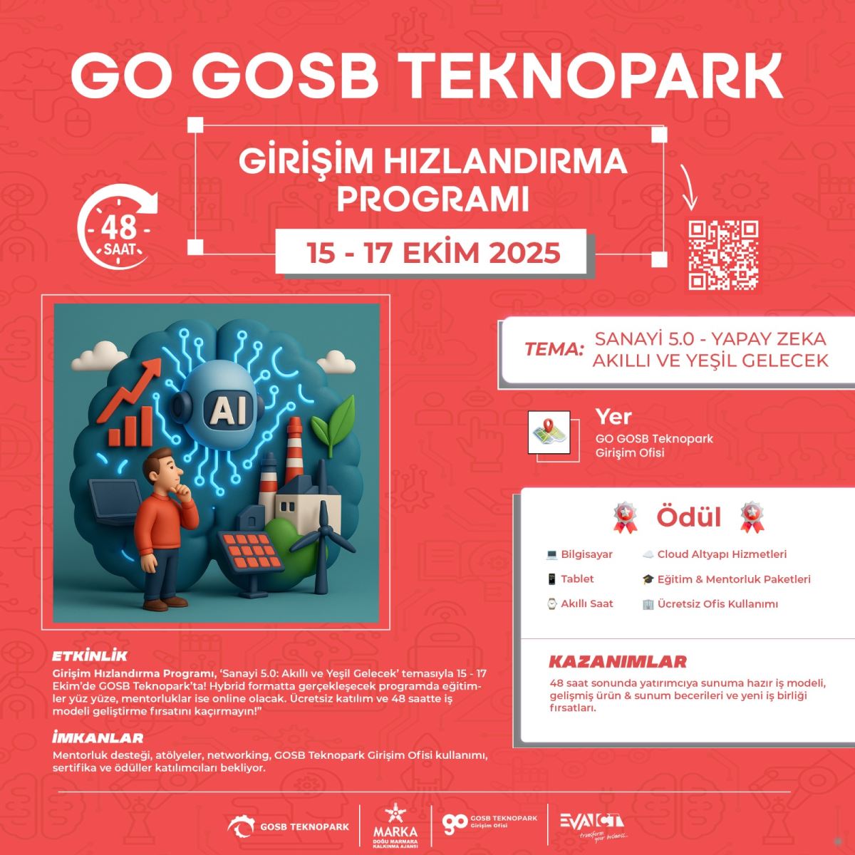 • Dizüstü bilgisayar ve şarj Yer (gündüz oturumları): GOSB Teknopark Girişim Ofisi — [Salon Adı] Online (akşam): Bağlantı bilgileri kabul e-postasıyla paylaşılır.